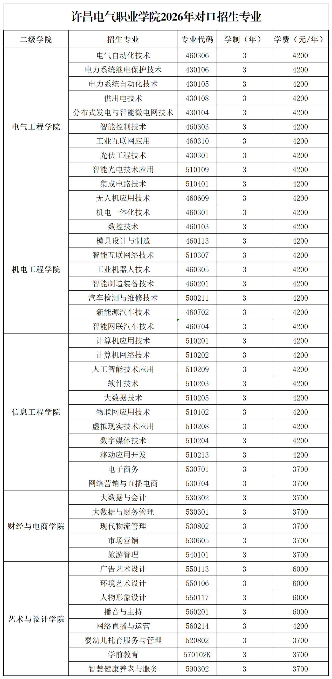 第四条 学制及毕业证书:关于学历证书按教育部及我省有关文件执行。学制三年,学生学业期满,成绩合格,颁发教育部电子注册、省教育厅验印的普通高等学校专科毕业证书。颁发学历证书的学校名称:许昌电气职业学院。