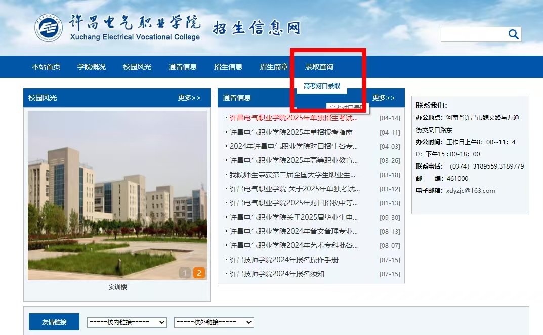 我校2025年对口升学录取工作已全部结束,现已开启录取查询渠道,考生可登录“许昌电气职业学院招生信息网”或“许昌电气职业学院招生就业处微信公众号”查询录取结果。